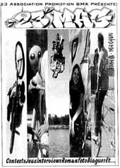 | 23mag est né début 1998 dans la tête de Fabien Roux et de mère inconnue. C'était en hiver, il faisait froid. Je crois même qu'il pleuvait. Cette session sous un porche d'immeuble mal éclairé était peu motivante. Quelques-uns d'entre nous préférèrent donc laisser de côté le practice pour discuter en attendant la saison nouvelle. Fabien Roux: Et si on écrivait un fanzine pour devenir riches et célèbres ? Nous autres: Ouaih, cool ! (dès qu'il s'agit de gagner de l'argent, on n'est pas très contrariants) Fabien Roux: Bon d'accord mais il va falloir bosser. Nous autres: Ah merde. (quand il s'agit de travailler, on l'est déjà plus) Fabien Roux: Il faut d'abord trouver un titre, pourquoi pas Valenxicos Mag ? Nous autres: Ah non ! Ca rime avec Mexicos ou Blockaus et ceux qui ne comprendront pas la blague vont croire qu'on est parisiens et nous jeter des cailloux. Fabien Roux: Dans ce cas là choisissons 23 qu'on écrirait twenty free. Twenty ferait référence à la taille des roues de nos bicyclettes (20 pouces). Three deviendrait free précisant que l'on s'intéresse à l'aspect freestyle de notre sport. Nous autres: ......................................... (Quand Fabien a une bonne idée on ferme notre gueule) | |
